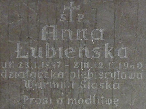 Kilka zdań o pracy Anny Łubieńskiej zawarł w swoim pamiętniku Wspomnienia Warmiaka (1961) Jan Baczewski. Zauważył, że Helena Sierakowska „miała dzielną i niestrudzoną pomoc w Annie Łubieńskiej, która nawet w dzień samego głosowania objeżdżała lokale wyborcze w Olsztyńskiem”. Towarzyszyła Janowi Baczewskiemu i dziennikarzowi amerykańskiemu Arthurowi Griffithowi w odwiedzinach lokali głosowania w Dorotowie, Gryźlinach, Miodówku, Wymoju, Gietrzwałdzie, Tomaszkowie. Niedzielny poranek 11 lipca 1920 roku nie zapowiadał klęski Polaków. Pierwsi do głosowania zjawili się wszak Polacy. Potem oddawano tylko głosy za Prusami Wschodnimi, czyli za Niemcami.