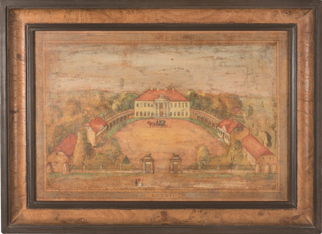 Pałac w Rudkach na obrazie Piotra Potworowskiego, około 1930 r. Źródło: Andrzej Emeryk Mańkowski, Kronika rodziny Mańkowskich, Szczawnica 2017.